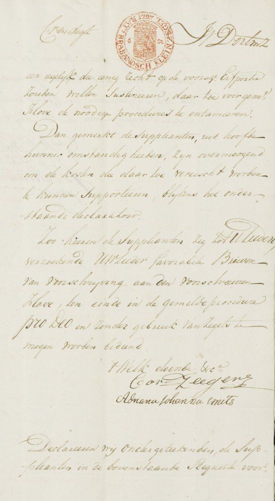 Geworden, met Versoek daar Aan Geloov te Slaan en alle handteekeningen indier voege te doen, Voor de Mijne te houden, terwijl zulks meerder per Courant alhier hebbe geadverteerd Blijkens de bijgaande.
