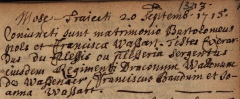 Deze Joannes zal jong overleden zijn, want op 30-08-1721 werd weer een Joannes gedoopt, (dit keer 'du Plessis' genaamd) in Herstal B.